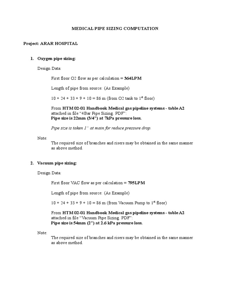 Medical Gas Pipeline Systems Design Calculations Eastwood Park