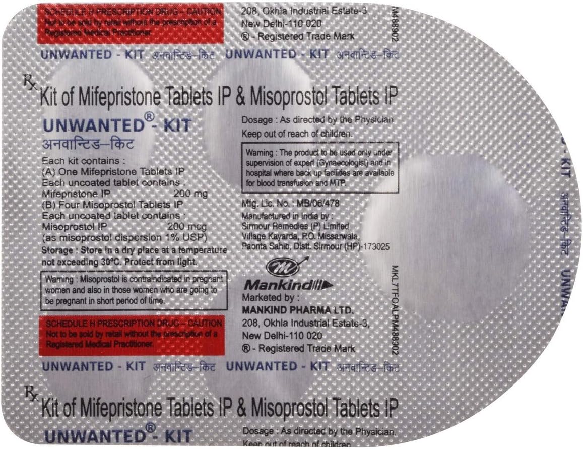 The abortion pills from this kit cause heavy bleeding and cramping therefore it is very important to prepare yourself. It is medically prescribed if you are within 63 days of gestation. I have bought mankind unwanted kit which contains 1 mifepristone and 4 misoprostol tablet for abortion.