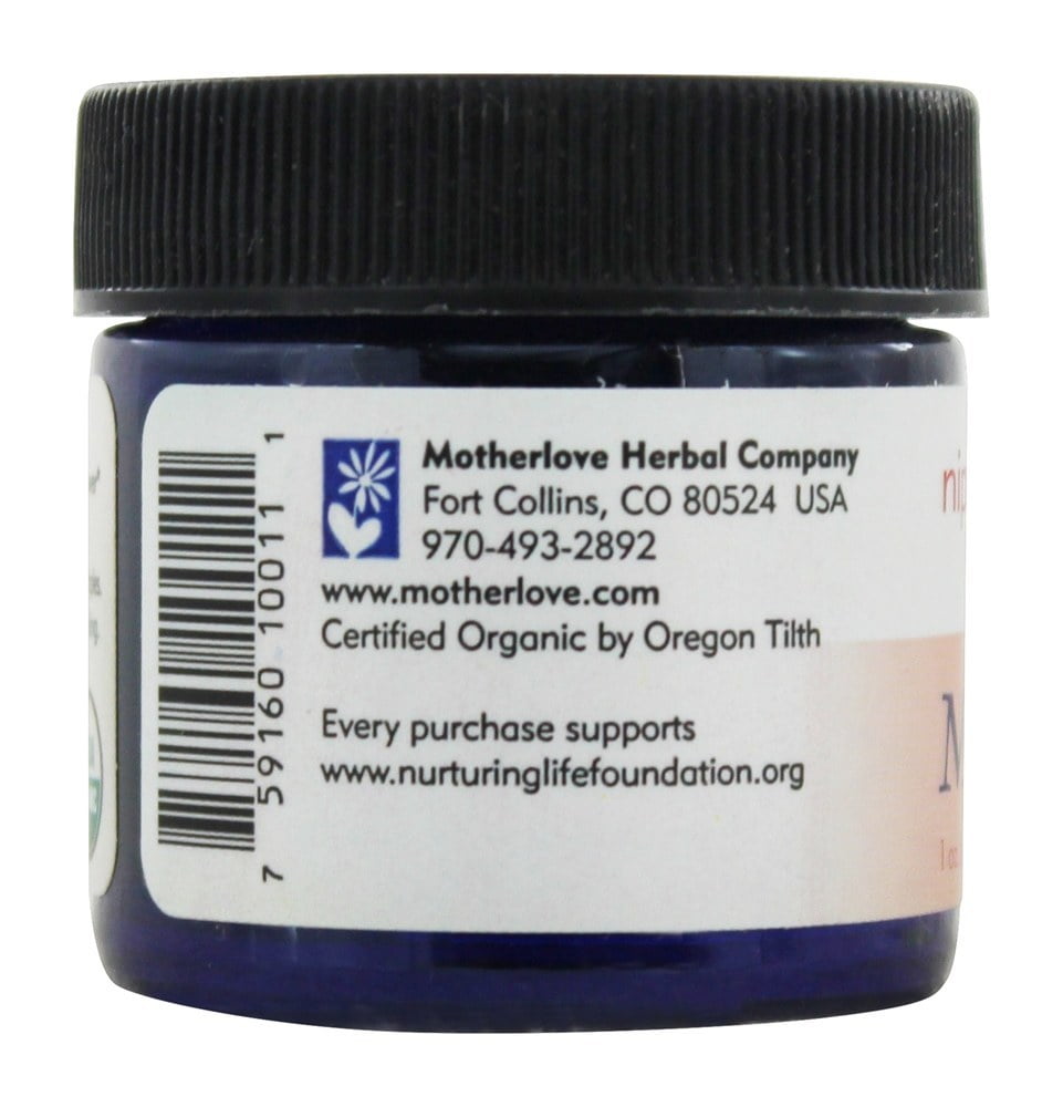 Motherlove products are made with USDA Certified Organic herbs are free of synthetic artificial ingredients. Motherloves award-winning Organic Nipple Cream provides relief to sore nursing nipples and helps you meet your breastfeeding goals. Nipple Cream rubs on smoothly and easily and there is no need to wash it off prior to nursing or pumping.