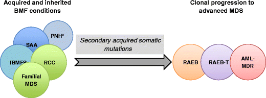 Tuncer MA Pagliuca A Hicsonmez G et al. It can lead to anemia recurrent infections andor excessive bruising and bleedingMDS can arise spontaneously also known as de novo or primary MDS or develop after exposure to certain drugs. Myelodysplastic syndromes MDS and acute myeloid leukemia AML exist along a continuous disease spectrum starting with early-stage MDS which may progress to advanced MDS AML cured AML or resistant AML.