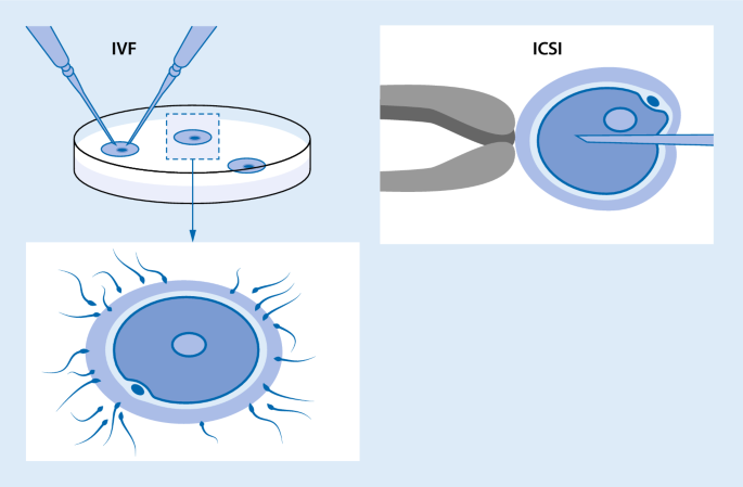 In-vitro-Fertilisation IVF Die Eizellen werden mit dem aufbereiteten Sperma in einem Reagenzglas zusammengebracht. Es findet eine spontane Befruchtung statt. Eine IVF- In-Vitro-Fertilisation oder ICSI-Behandlung Intrazytoplasmatische Spermieninjektion wird bis auf wenige Ausnahmen nach hormoneller Stimulation der Eierstöcke durchgeführt.