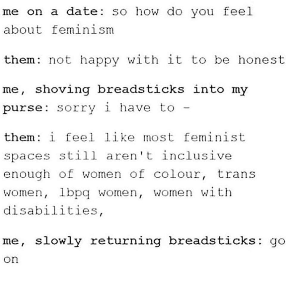 What have i done. Stuffs breadsticks into purse im sorry I have to leave immediately right now and make a blog about breadsticks memes. I dont like them because theyre all emo trash. The date responds with something they find problematic bad unfortunate and the date immediately begins shoving breadsticks into their purse and says they have to go home. Originally from this Vine Tumblr users took the dialogue and did what they do best. I have to go. Can also be told with the person asking what astrology sign they are and the response is Gemini.