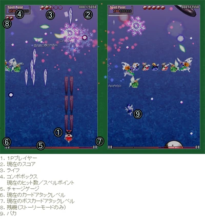 Touhou 9 123 Same as above except her ribbon is green instead of blue however her sprite in 9 still keeps the blue ribbon.