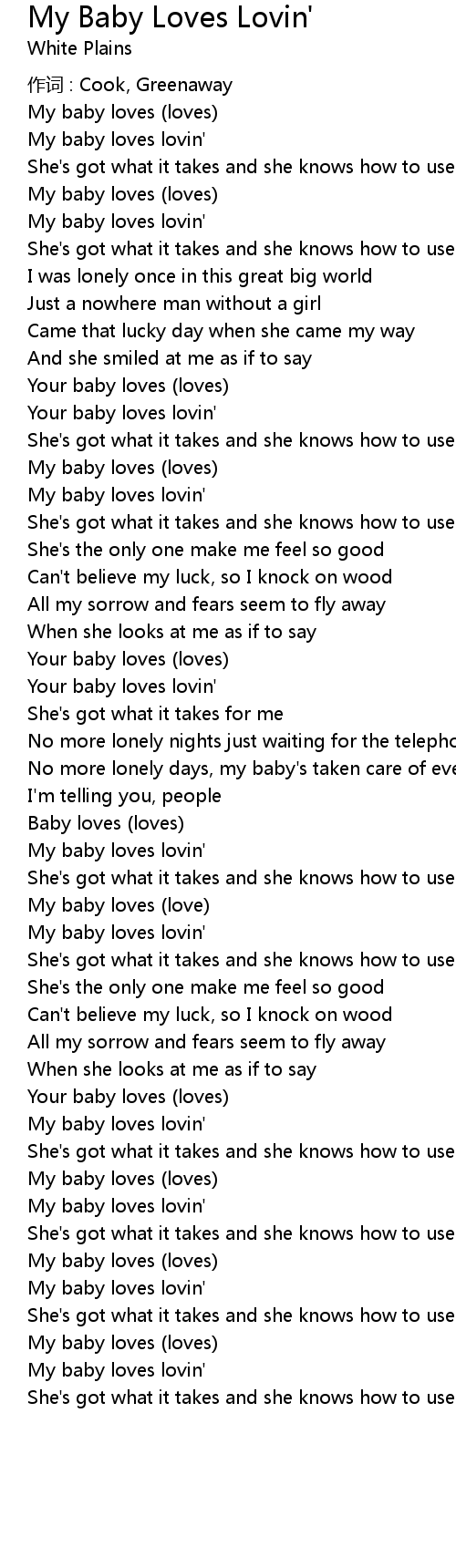 My baby loves lovin lyrics. When Im gone steady going. All My Loving is a song by the English rock band the Beatles from their second UK album With the Beatles 1963. My sexy love So sexy She makes the hairs on the back of my neck stand up Just one touch And I erupt like a volcano and cover her with my love.