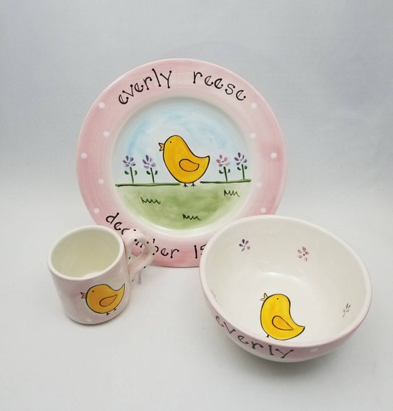 Cup Bowl And Plate Set Personalized Ceramic Baby Gift Etsy