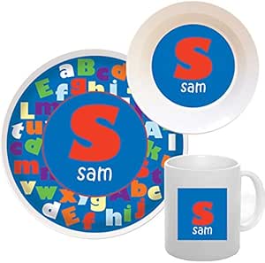 Amazon Com Personalized Kids Dinnerware Abc Blue Melamine Set Home Kitchen