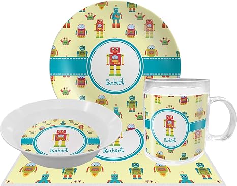 Amazon Com Robot Dinner Set Single 4 Pc Setting W Name Or Text Baby