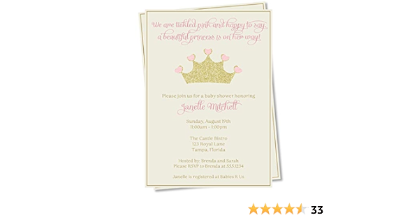 Amazon Com Princess Baby Shower Invitations Pretty Princess Girl Pink Gold Crown Sparkle Bling Glitter Sprinkle Ivory Tiara Custom Printed Invites Cards 12 Count Home Kitchen