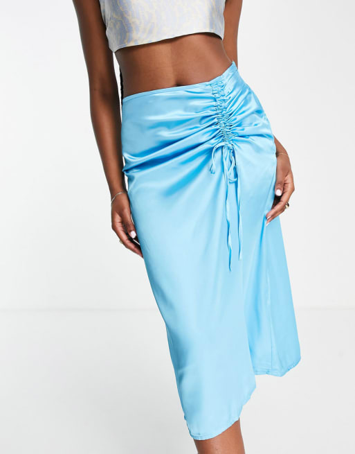 Sky-Blue Satin Top Midi Skirt 2-Piece Set. 100 Polyester Imported California Proposition 65 WARNING. Add to cart Fabric.