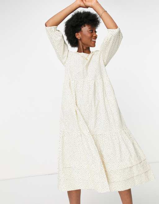 Voyage print linen flared panel dress with voluminous sleeves and contrast buttons. FREE SHIPPING AND RETURNS. Let it sparkle with this show stopping dress.